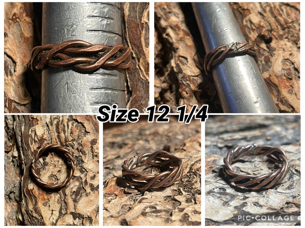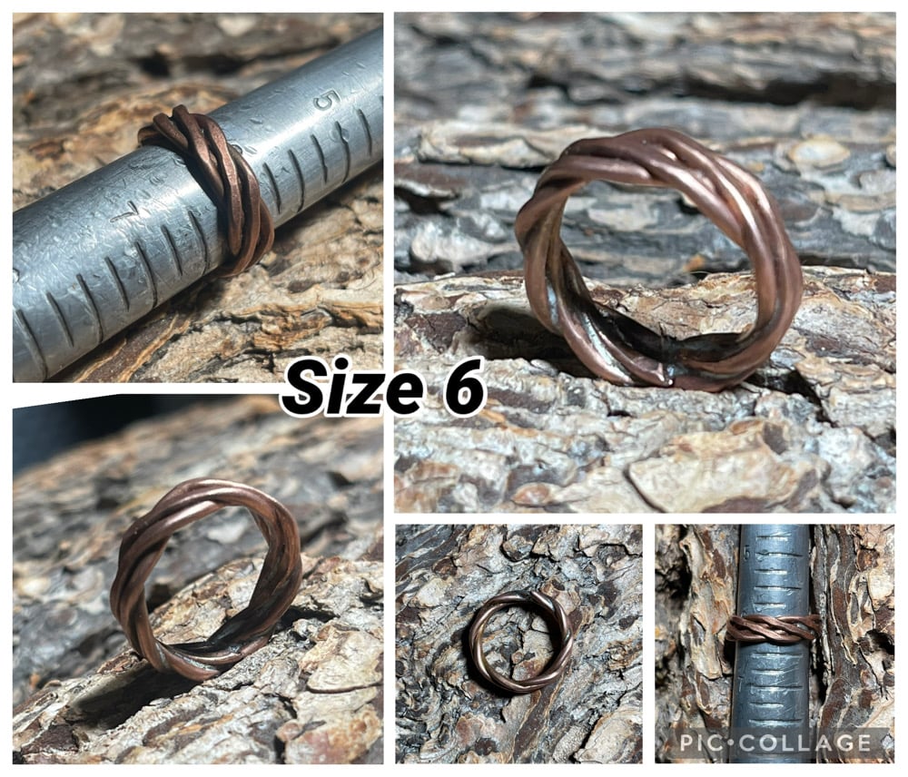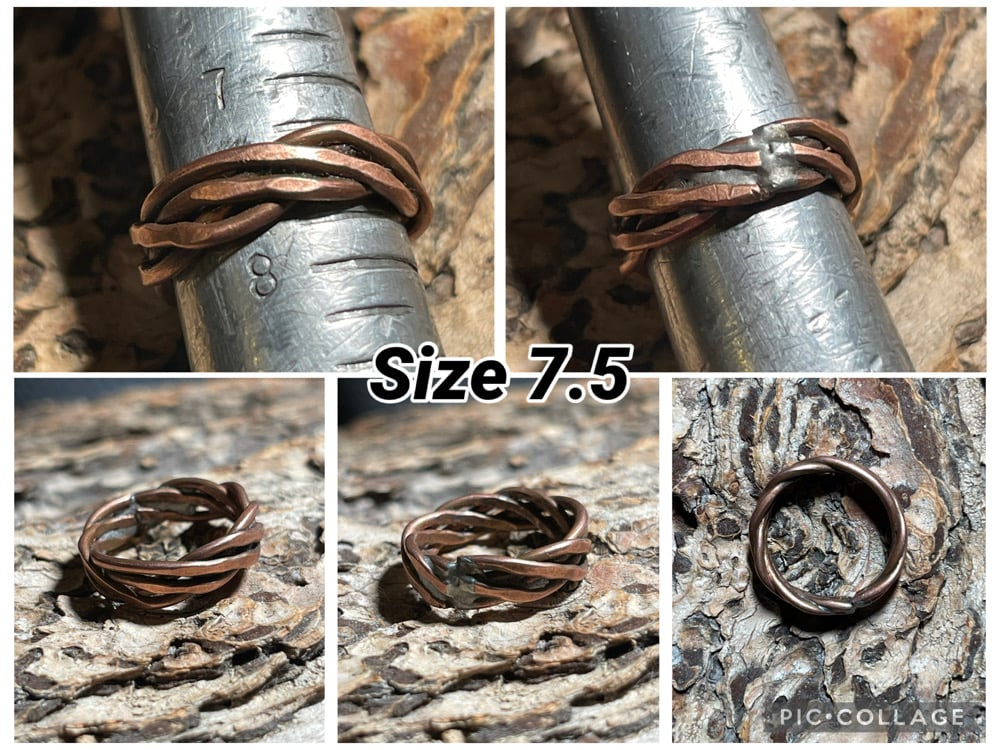 These mostly copper (some with steel) rings are made of upcycled wire, that is stripped, twisted, pounded, annealed, shaped, soldered and polished into these one of a kind pieces.